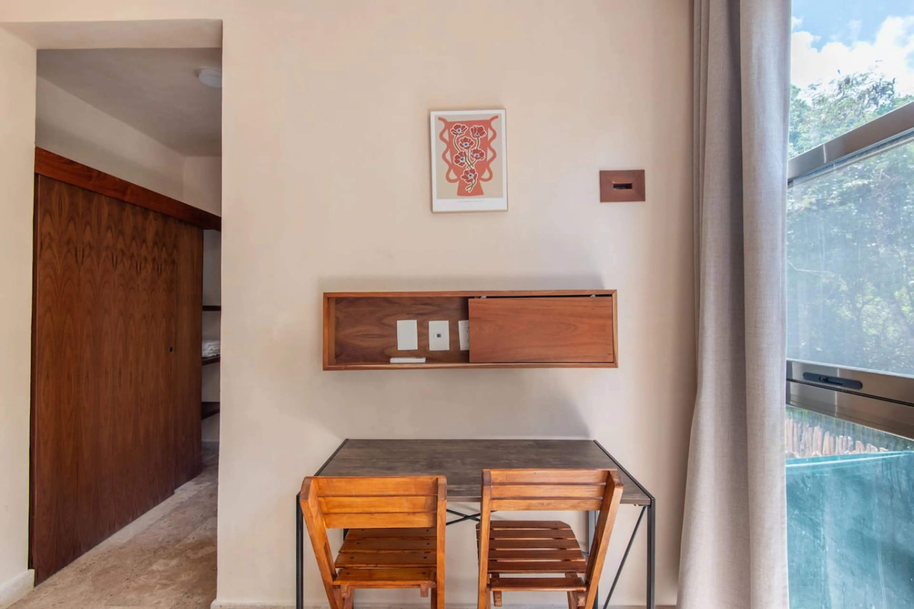 Loft con Cama King Size, Baño completo, Closet, Caja fuerte, frigobar, Cafetera, balcón o pasillo tazas, Smart TV, Internet, luz, aire acondicionado y ventilador. Agua caliente (calentador solar) Áreas comunes con dos piscinas, cocina común equipada, asoleadero, área para carne asada, terraza, escri...