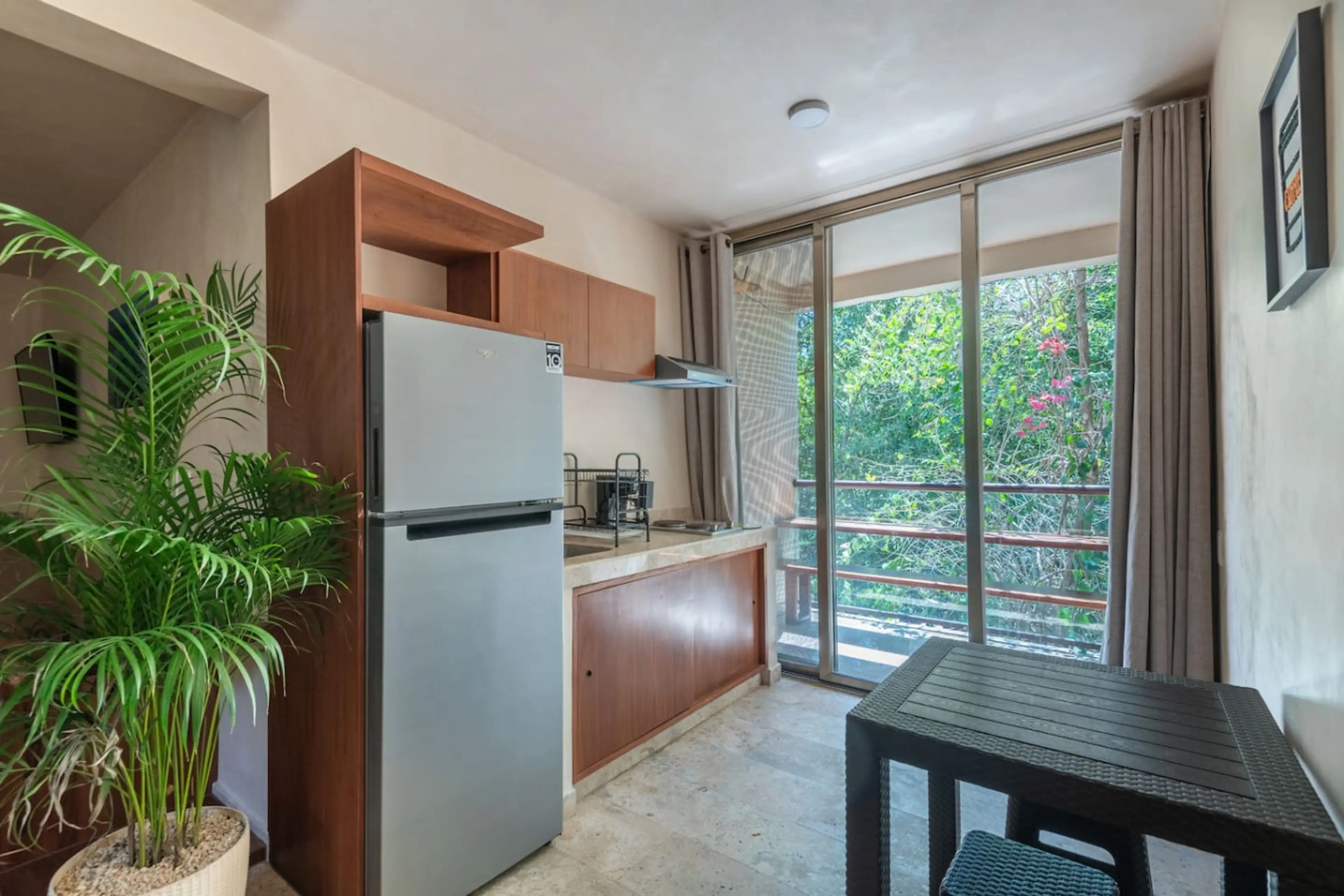 Amplio Apartamento con todas las comodidades cerca de la playa y de hermosos cenotes (piscinas naturales que viene de los ríos subterráneos) Descripción: Dos camas matrimoniales Un Sofá cama matrimonial Baño completo Closet Caja fuerte Cocineta con refrigerador, horno eléctrico, licuadora, cafetera,...